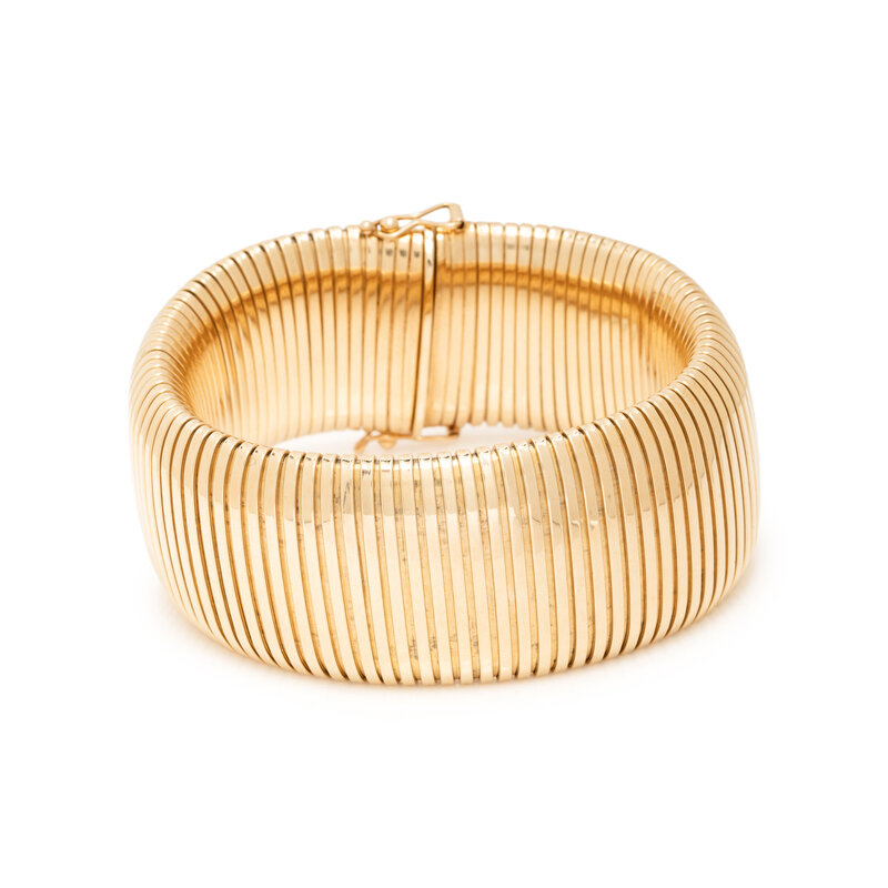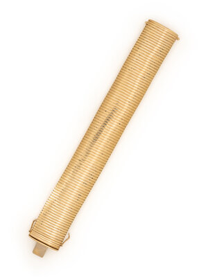 14 karat yellow gold. 7 3/4 inches long, 1 1/8 inches wide.