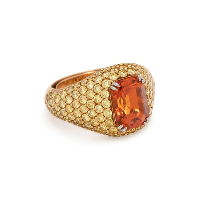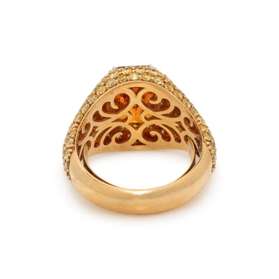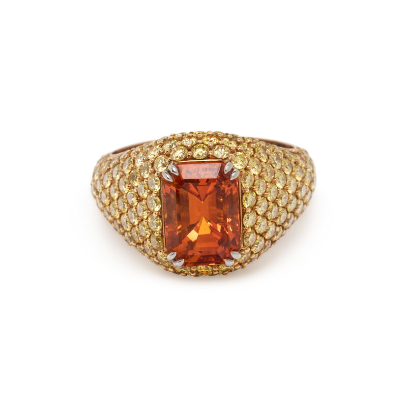 ORANGE SAPPHIRE AND YELLOW DIAMOND RING