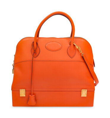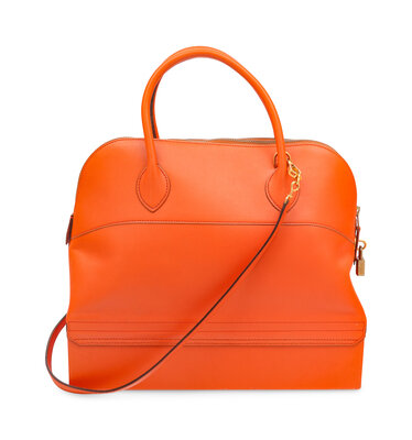Bolide Macpherson 34 Bag in Orange Swift Leather with Gold-Plated Hardware.