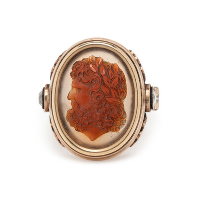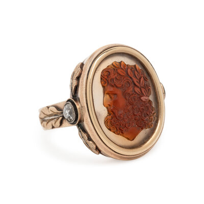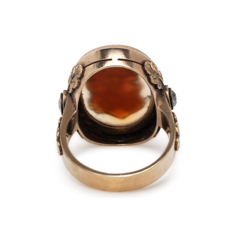 VICTORIAN, YELLOW GOLD, HARDSTONE CAMEO, AND DIAMOND RING