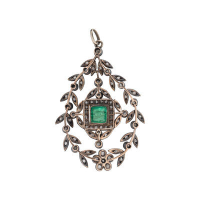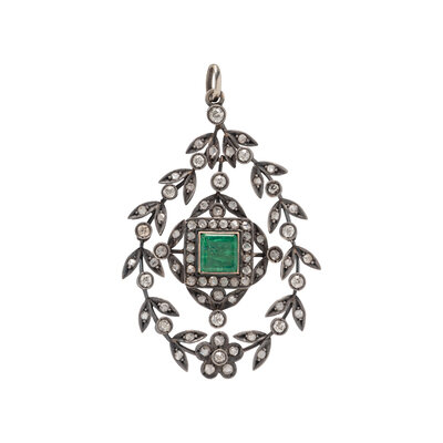 ANTIQUE, DIAMOND AND EMERALD PENDANT