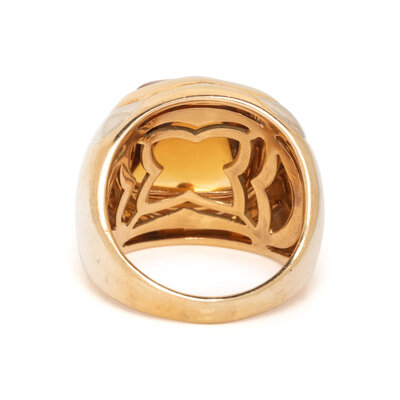 Sugarloaf citrine measuring approximately 12.00 x 12.00 x 7.50 mm. Yellow and white gold. Ring size 6 3/4.