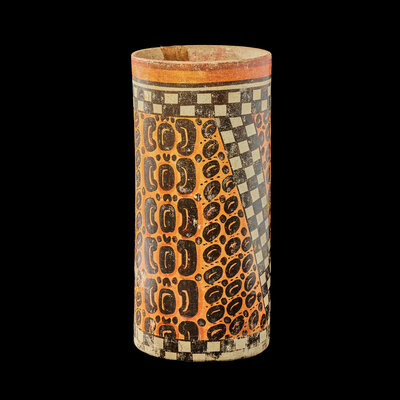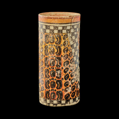 A Maya Polychrome Cylinder Vessel
