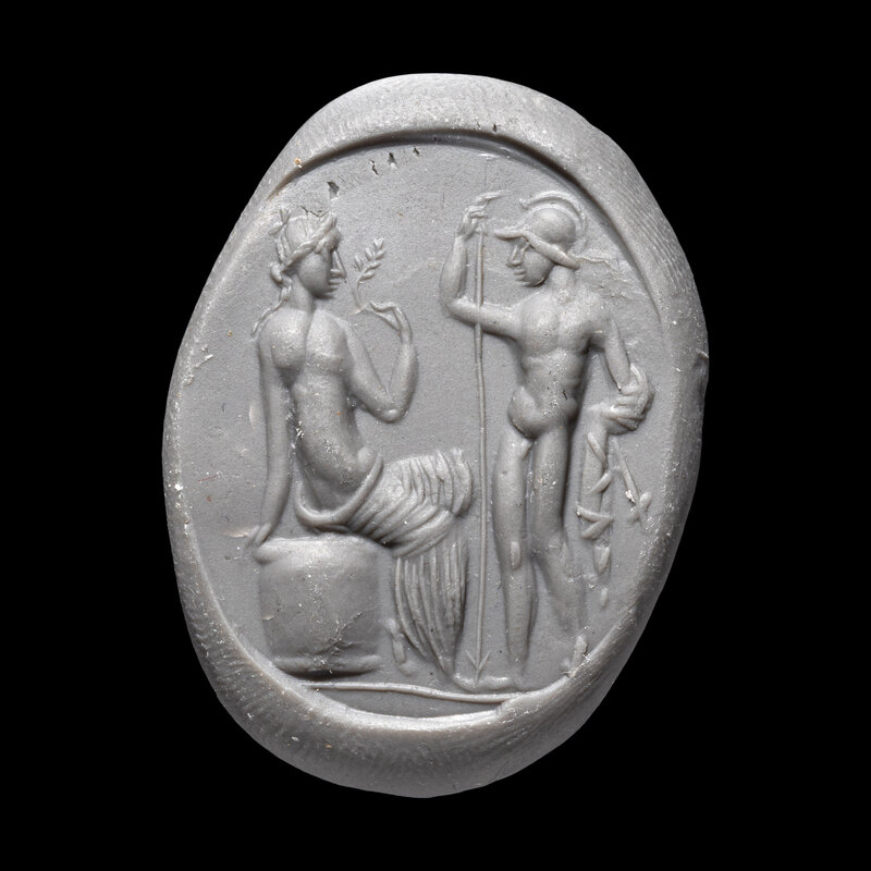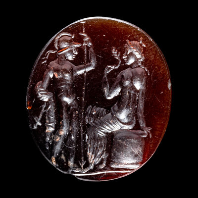 A Roman Carnelian Ring Stone with the Gods Ares and Venus