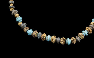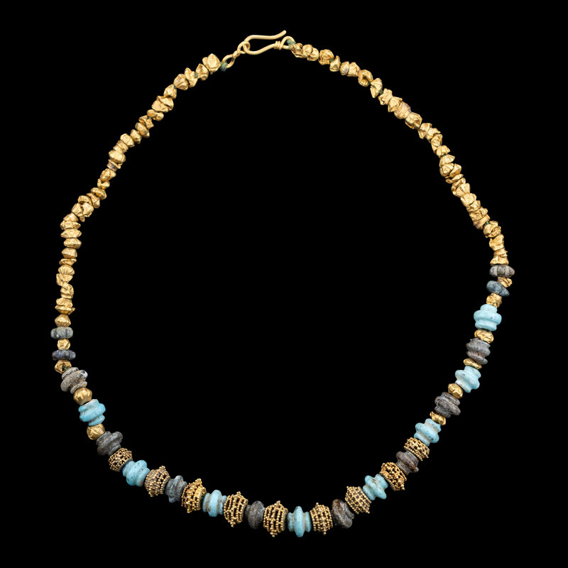 An Western Asiatic Stone Beaded Necklace with Ancient Gold Spacers