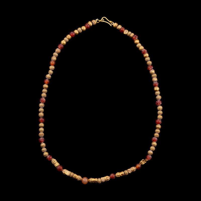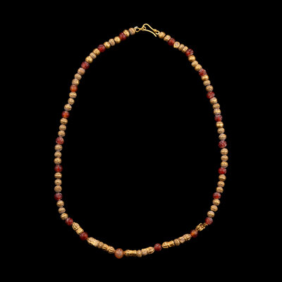 A Bactrian Carnelian and Gold Beaded Necklet