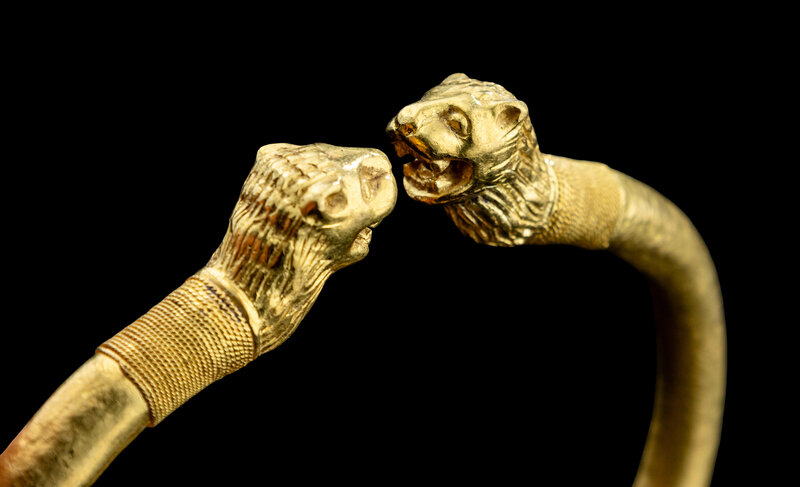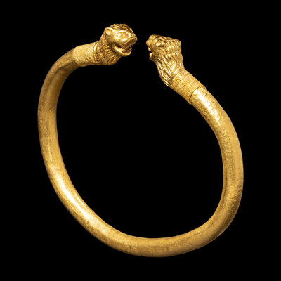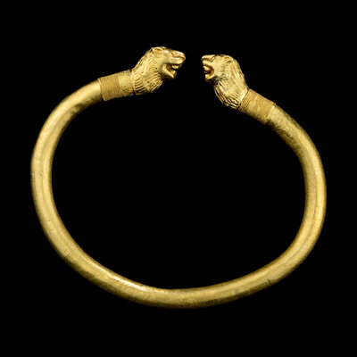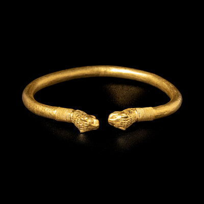 A Greek or Achaemenid Gold Bracelet with Lion Terminals