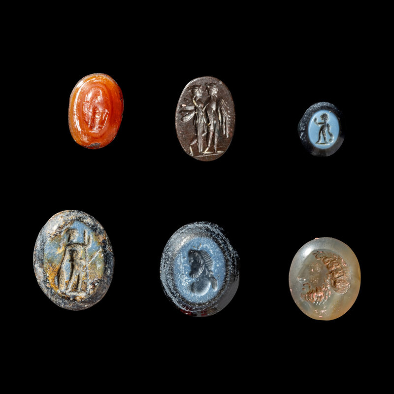 Six Roman Nicolo and Agate Intaglios
