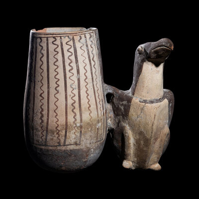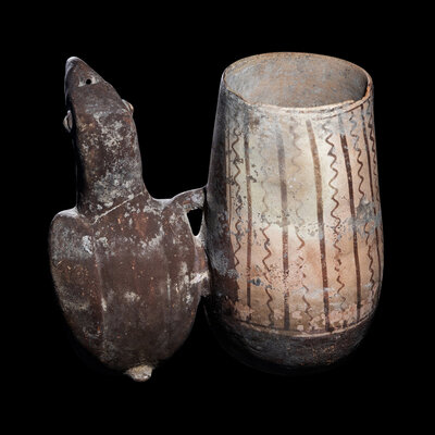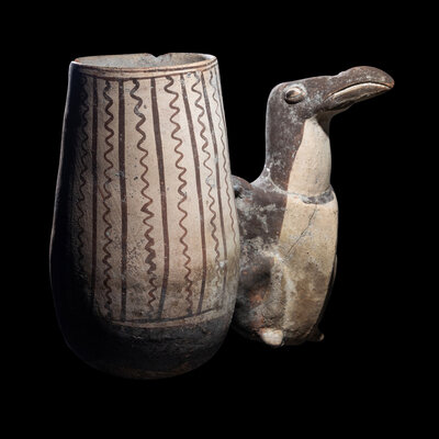 A Chancay Bichrome Bird Effigy Vessel
