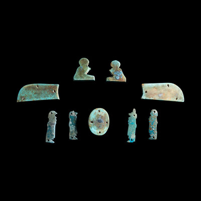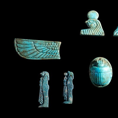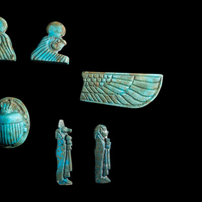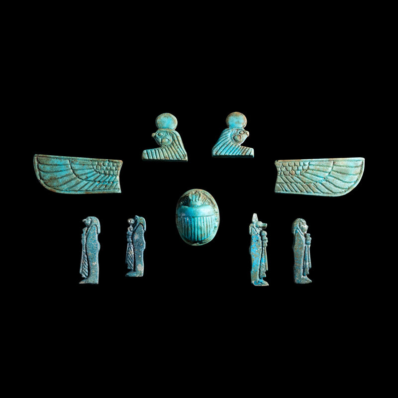 An Egyptian Faience Winged Scarab Set