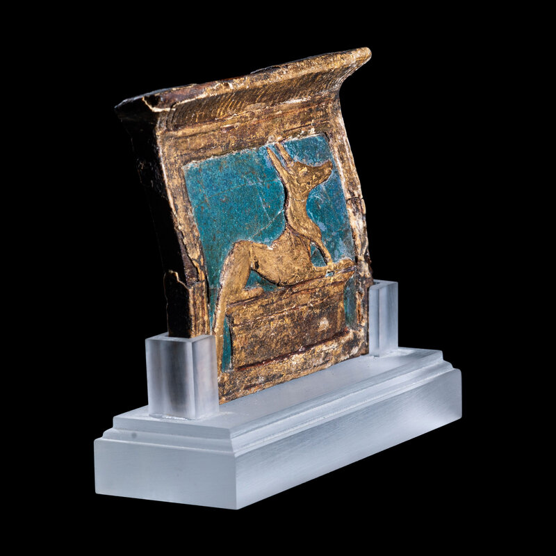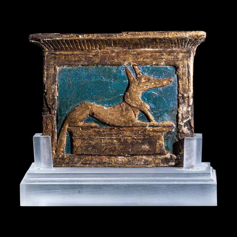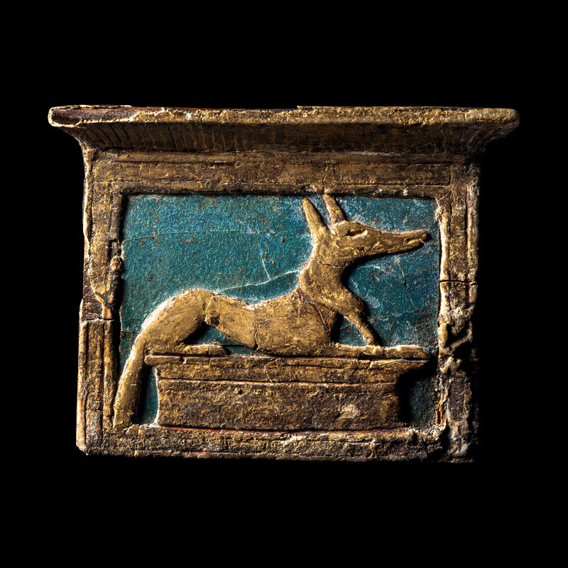 An Egyptian Enamel and Gilt Wood Anubis Pectoral
