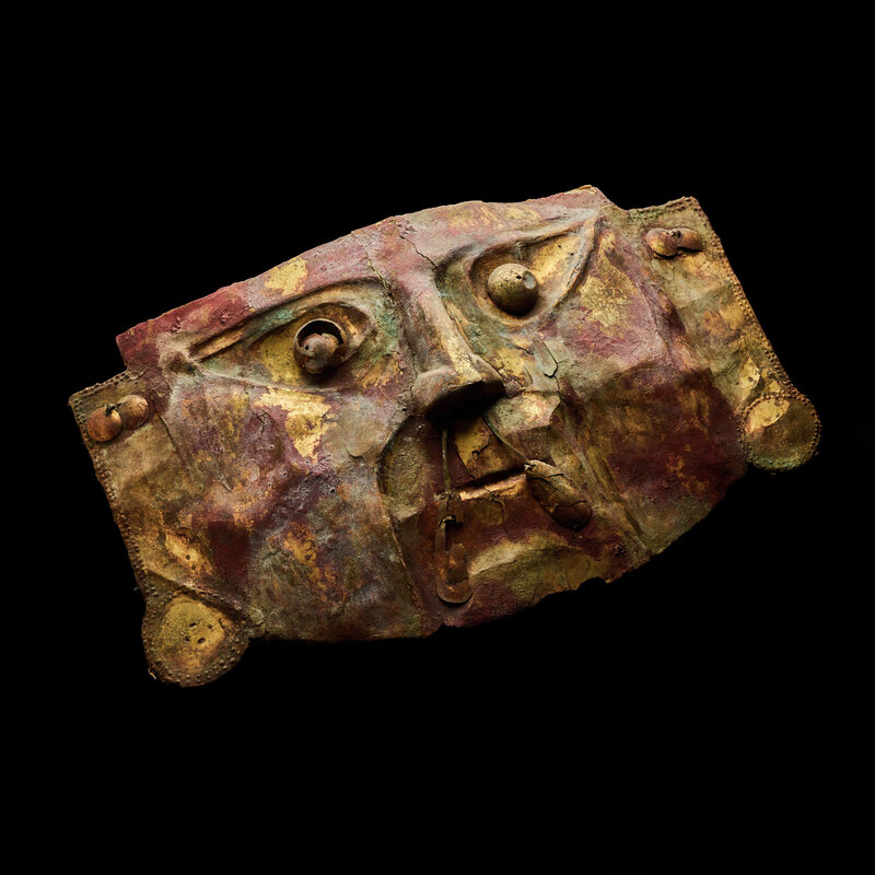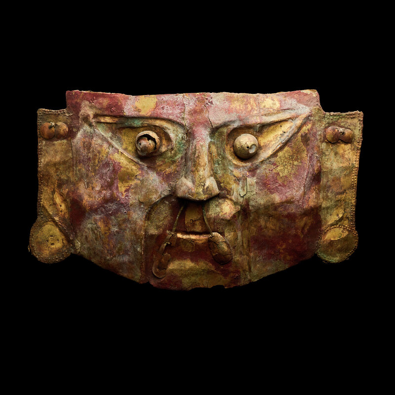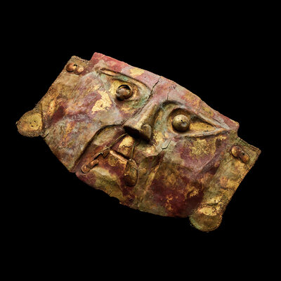 A Chimu Metal Mask with Red Pigment