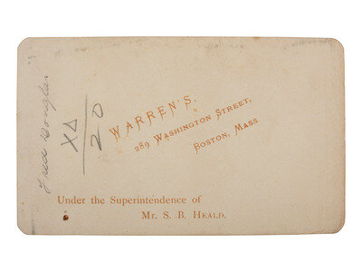 2 1/4 x 3 3/4 in. CDV on cardstock mount with Warren's Boston imprint on verso, including the line "Under the Superintendence of Mr. S. B. Heald" (toning and spotting to print, light soiling to mount). Published as Plate 43 in Picturing Frederick Douglass; No. 99 in the catalogue raisonné.