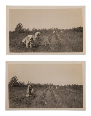 [With:] 2 silver gelatin photographs, 3 3/4 x 6 in., showing sharecroppers picking cotton, photographer and location unknown.