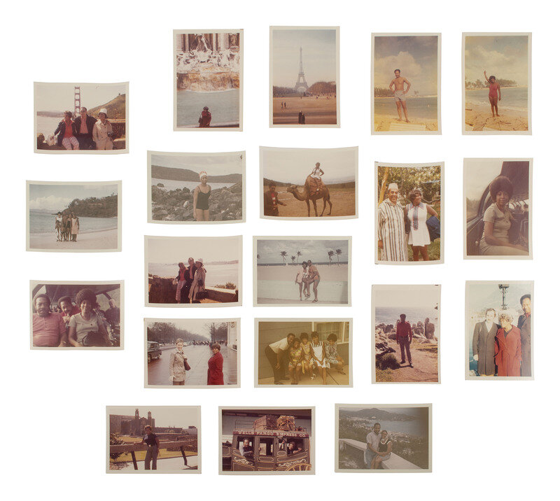 Featured is an immense collection of approx. 500 snapshots providing a window in the life of an African American family including parties and social gatherings, sporting events, religious ceremonies, trips to the beach, out west, Paris, and other locales abroad incl. images of subjects riding camels and approx. 25 images of a Spanish bull fight, leisure time, and candid and posed portraits capturing "everyday life." Most images are in color, a small portion are black-and-white. Some feature date stamps ranging from 1960-73.