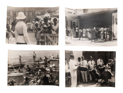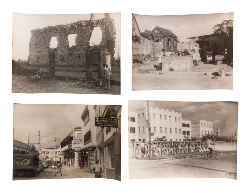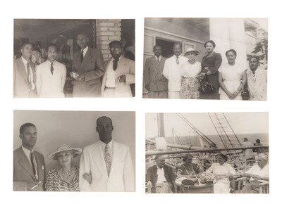 The travelers identified above are featured in many of the images, which provide both informal views and more formal, intimate studies of the subjects, taken aboard the ship as well as the various stops throughout the cruise. Several photographs document the ports of call, capturing the local people, events, architecture, landscapes, vegetation, and more. Ports of call included St. Thomas, Martinique, Trinidad, Barbados, St. Vincent, Curacao, Panama, Haiti, and Havana.
