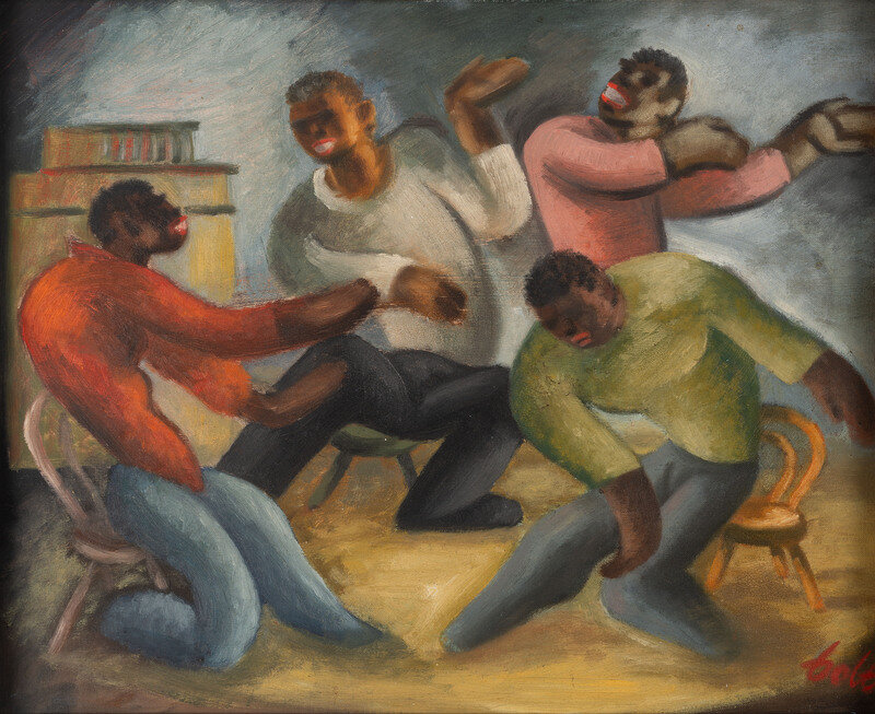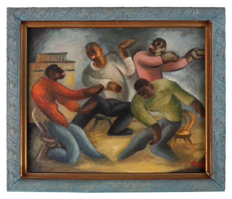 [HARLEM RENAISSANCE]. Painting depicting a group of men dancing.