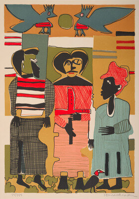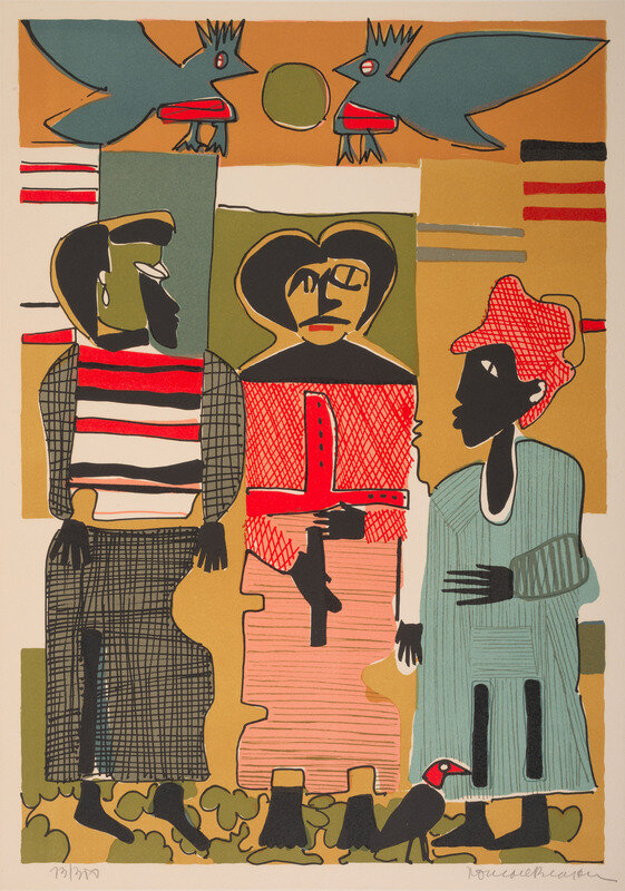 BEARDEN, Romare (1911-1988), artist. Firebirds. Signed print. [1979].