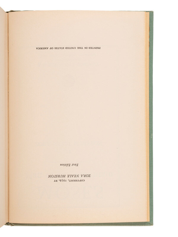 FIRST EDITION stated on copyright, in a second issue binding. Moses, Man of the Mountain recounts the Book of Exodus of Moses from an African-American perspective, with critiques of male dominance and slavery added into the story. It received mixed reviews upon publication however its historical reputation has greatly improved over time, with many modern commentators seeing significance in Hurston's metaphors as viewed through the context of Adolf Hitler's rise to power during the time period of the book's initial release. Blockson 5889.