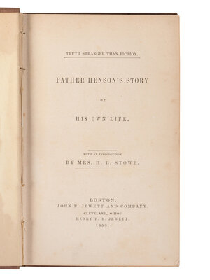 HENSON, Joseph (1789-1881). Truth Stranger Than Fiction: Father Henson's Story of his Own Life. Boston; Cleveland: John P. Jewett & Co., Henry P. B. Jewett, 1858.