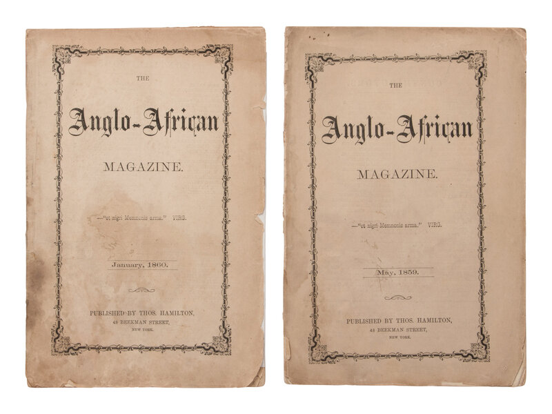 HAMILTON, Thomas (1823-1865) and HAMILTON, Robert (1819-1870), editors. The Anglo-African Magazine. 2 issues (incomplete run). New York: Thomas Hamilton, 1859-1860.