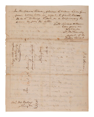 ALS ("W. McKenney") as an agent of the American Colonization Society. Baltimore, MD, 3 May 1830. Addressed to Reverend Furlong of Abingdon, MD.