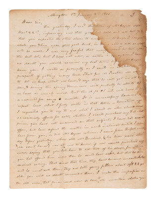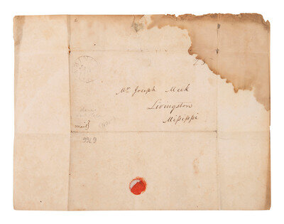 LOGAN, Samuel (1799-1855). Autograph letter signed ("Saml. Logan"). Addressed to Mr. Joseph Meek of Livingston, Mississippi. Abingdon, Virginia. 8 January 1835. 2pp, bifolium, addressed on terminal leaf.