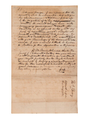 [ENSLAVEMENT]. Lawyer's letter outlining case against men accused of assaulting enslaved persons.