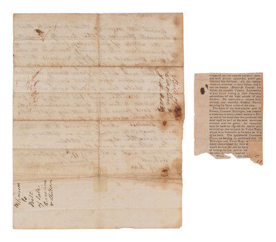 [With:] Clipped advertisement for a "Public Sale" of "17 Valuable Slaves / Consisting of Men, Women, and Children" to be held "before the Court House door, in the city of Lexington [Fayette County, Kentucky], on Monday the 18th day of March next." 3 x 3 3/4 in.