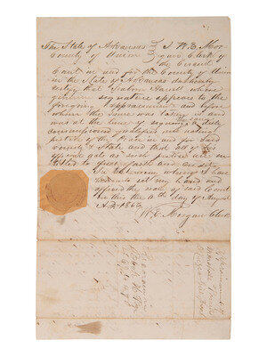 [ENSLAVEMENT]. Manuscript appraisal of an enslaved girl named Juda. Union Co., AR, 1856.