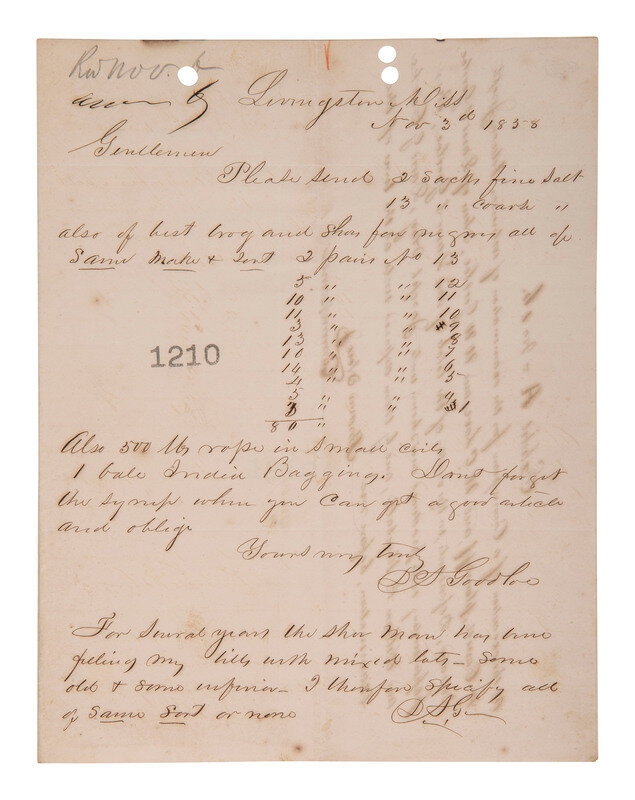 ALS addressed to unknown "Gentlemen." Livingston, MS, 3 November 1858.