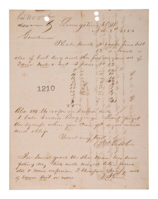 Together, 2 letters with unusual content written from a pre-Civil War Mississippi plantation.