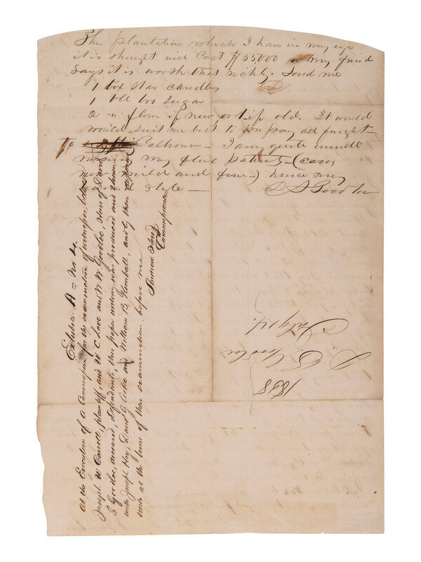 He lastly discusses the cost of the Yazoo River Plantation he wishes to buy, and places an order for some basic groceries.