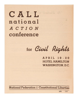 [CIVIL RIGHTS]. Call National Action Conference for Civil Rights. Washington, DC: NFCL, 1941.