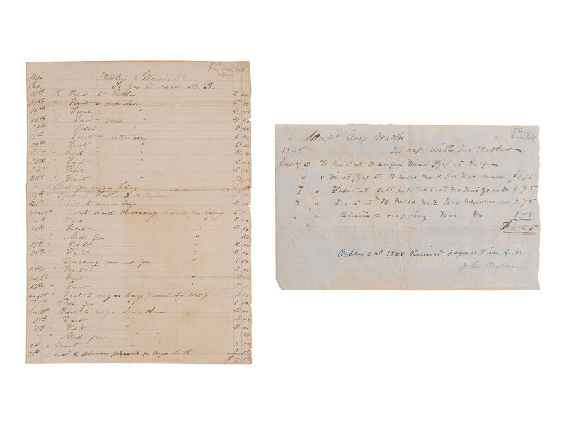 [ENSLAVEMENT]. 3 doctors' bills for medical services rendered, incl. to slaves during the Civil War.