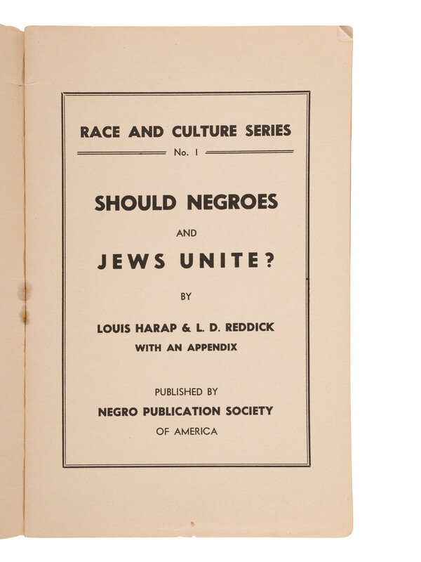 HARAP, Louis & L. D. REDDICK. Should Negroes and Jews Unite? New York: Negro Publication Society of America, 1943.