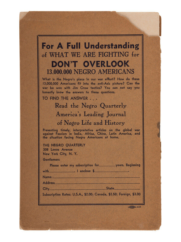 This pamphlet reprinted two articles originally published in the summer 1942 issue of the Negro Publication Society of America's magazine, The Negro Quarterly, "Anti-Negroism Among Jews" (Harap) and "Anti-Semitism Among Negroes" (Reddick). The pamphlet also includes excerpts from reviews and letters mailed in response to the original printing of the articles.