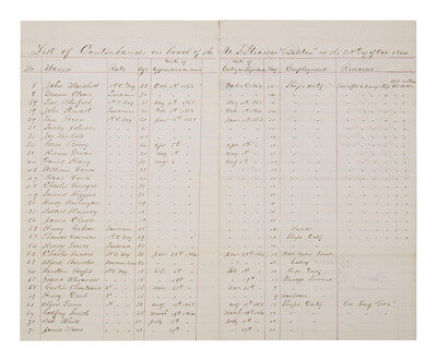 [CIVIL WAR]. List of Contrabands on board of the U. S. Steamer "Benton"...Oct. 1864. Manuscript log.