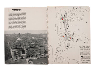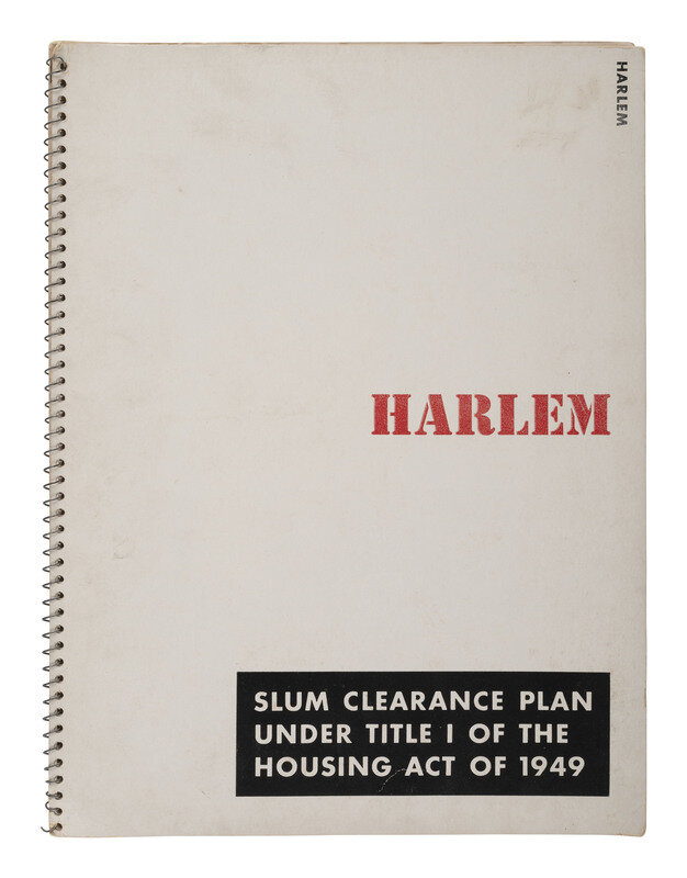 Harlem: Slum Clearance Plan Under Title I of the Housing Act of 1949. New York: Committee on Slum Clearance Plans, 1951. 52pp, 9 x 12 in., spiral bound (minor bumping to page corners, some smudging/soiling/wear to covers).