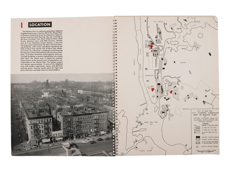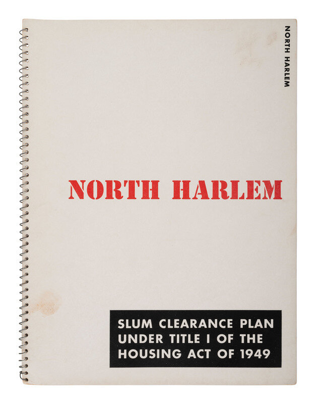 North Harlem: Slum Clearance Plan Under Title I of the Housing Act of 1949. Committee on Slum Clearance Plans, 1951. 52pp, 9 x 12 in., spiral bound (minor bumping to page corners, smudging/soiling to covers.
