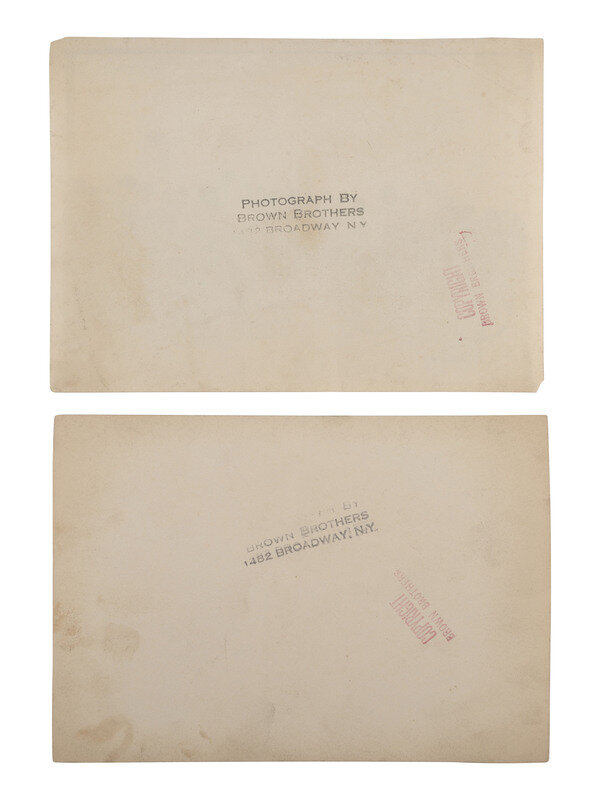 A group of 3 silver gelatin photographs, each with applied paper label or ink stamps on versos credited to Brown Brothers, New York, NY. Scenes include: