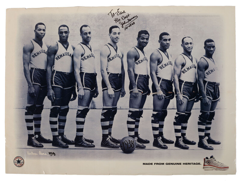 [SPORTS] ISAACS, John. Signed advertisement for Converse ft. NY Renaissance basketball team. 1996.