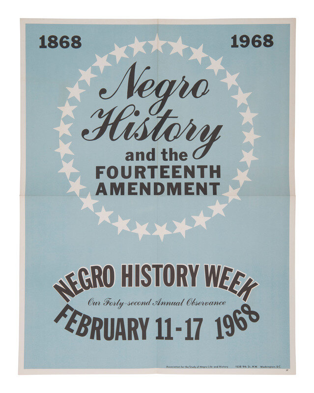 [With:] Negro History and the Fourteenth Amendment / Negro History Week / February 11-17, 1968. Washington, DC: Association For The Study Of Negro Life & History. 22 x 17 in. poster. Additional dates at top, "1868 / 1968."