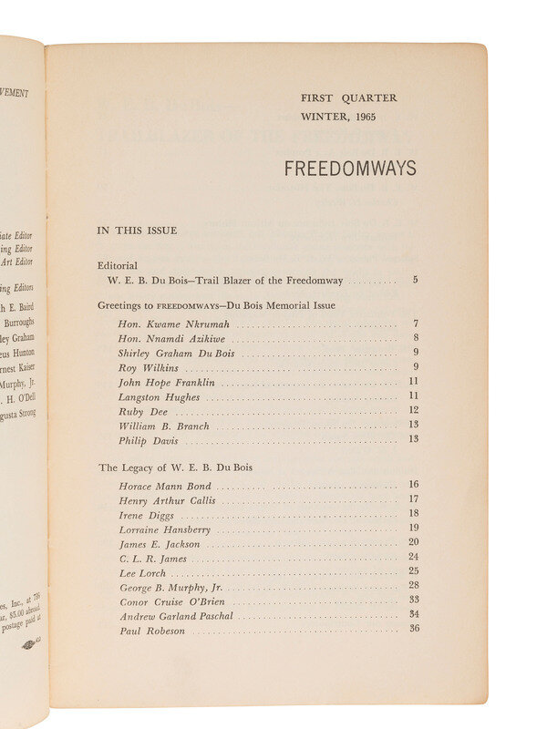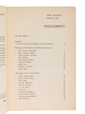 [WITH:] Freedomways: A Quarterly Review of the Negro Freedom Movement. "W.E.B. Du Bois Memorial Issue." Vol. 5, No. 1. New York: Freedomways Associates, Inc., Winter 1965.