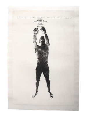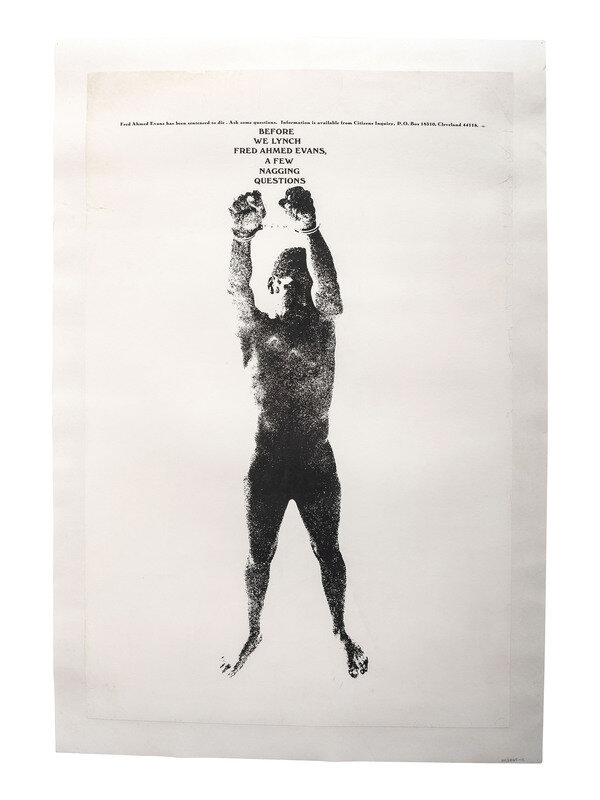 Before We Lynch Fred Ahmed Evans, A Few Nagging Questions. Cleveland, OH, 1968. 34 1/2 x 22 3/4 in. poster (considerable restoration to significant margin tears, mounted on archival paper). Allied Printing label to upper right corner.