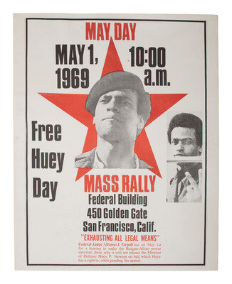 Free Huey Day / May Day. May 1, 1969. Mass Rally Federal Building, 450 Golden Gate, San Francisco, Calif. [Oakland, CA]: 1969. 22 x 17 1/2 in. poster (light folding and creasing, including few creases to edges, minimal tape residue on verso).