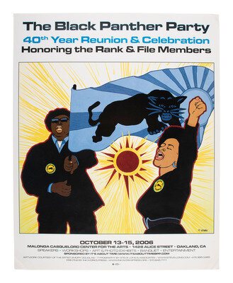DOUGLAS, Emory (b. 1943), artist. The Black Panther Party. 40th Year Reunion & Celebration Honoring the Rank & File Members. Oakland, CA, 2006. 16 x 20 in. printed poster (creasing at corners).