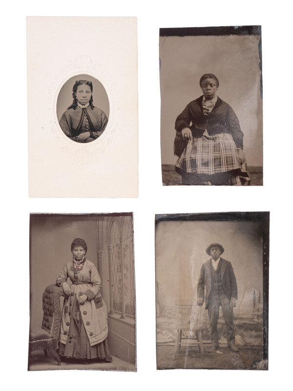 [With:] 4 tintypes, approx. 3 1/2 x 2 1/2 in. or smaller, featuring studio portraits of African American subjects, including 3 young women and one young man (overall good to very good, some with light creasing, some surface wear).
