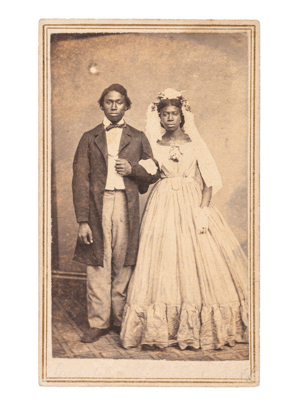 [EARLY PHOTOGRAPHY]. CDV of an African American bride and groom. Quincy, IL: Mrs. W.A. Reed.