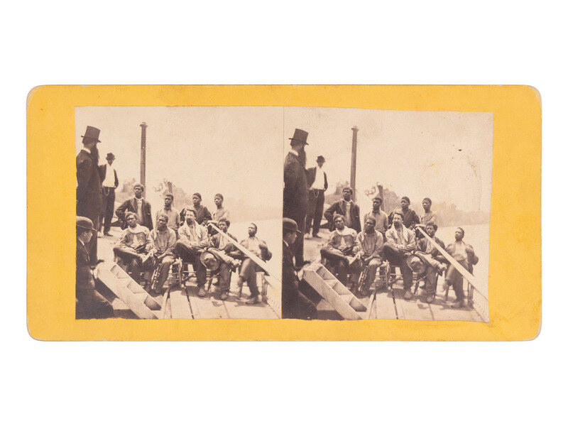 [EARLY PHOTOGRAPHY]. Stereoview featuring a group of African American convicts from Mobile, AL.